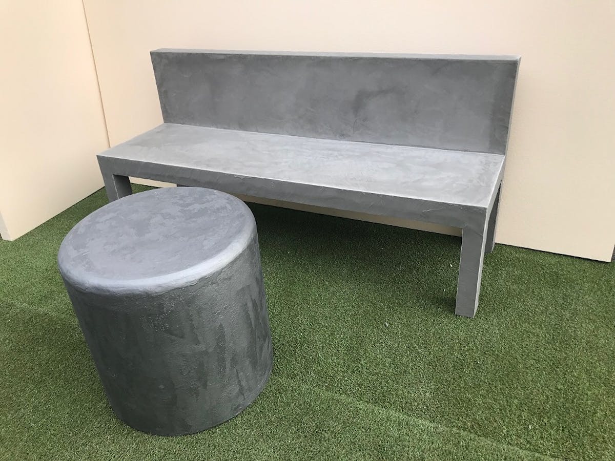 今回ご紹介したコンクリート風仕上げの屋外家具は、見た目の重厚感とは裏腹に、発泡スチロールを芯材にしているためとても軽く、施工性にも優れています。耐水性や紫外線への強さもポイントで、屋外空間に長く安心して設置できるのが魅力です。
